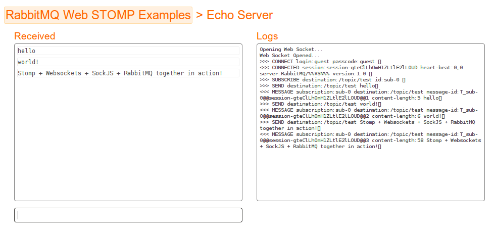 • "echo" - shows how to use STOMP to do simple message broadcasting (source)
